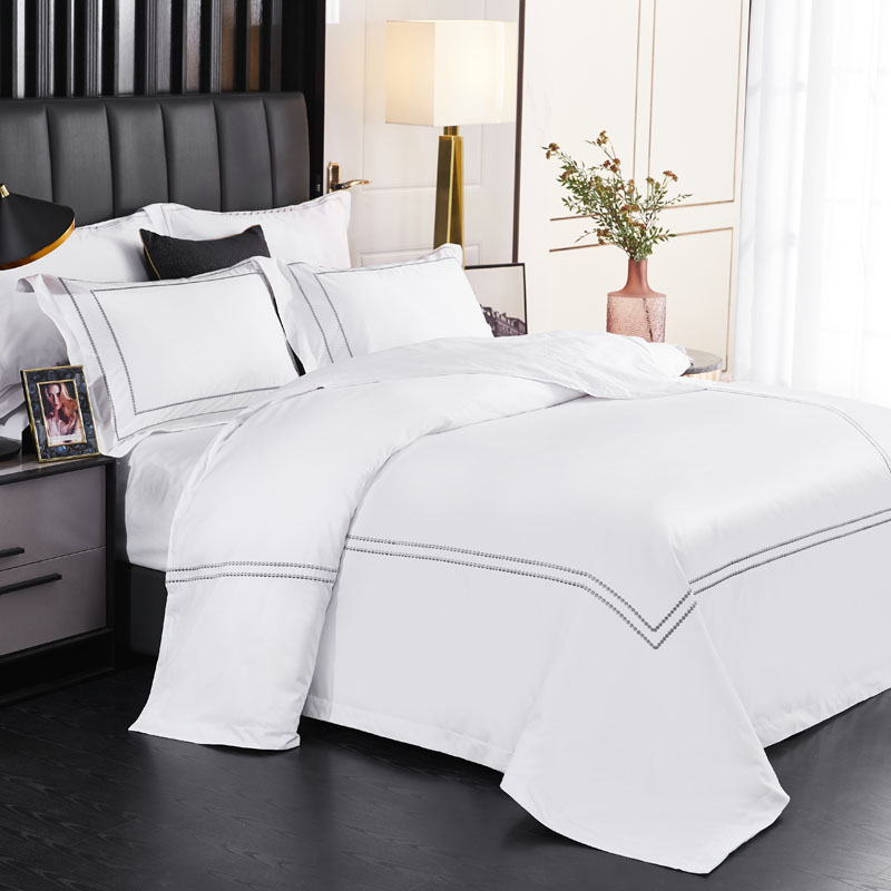 বাড়ি / পণ্য / হোটেল বেডিং সেট / সুতি হোটেলের বেডিং সেট / 300TC ডট এমব্রয়ডারি 100% তুলো বেডিং শীট সেট