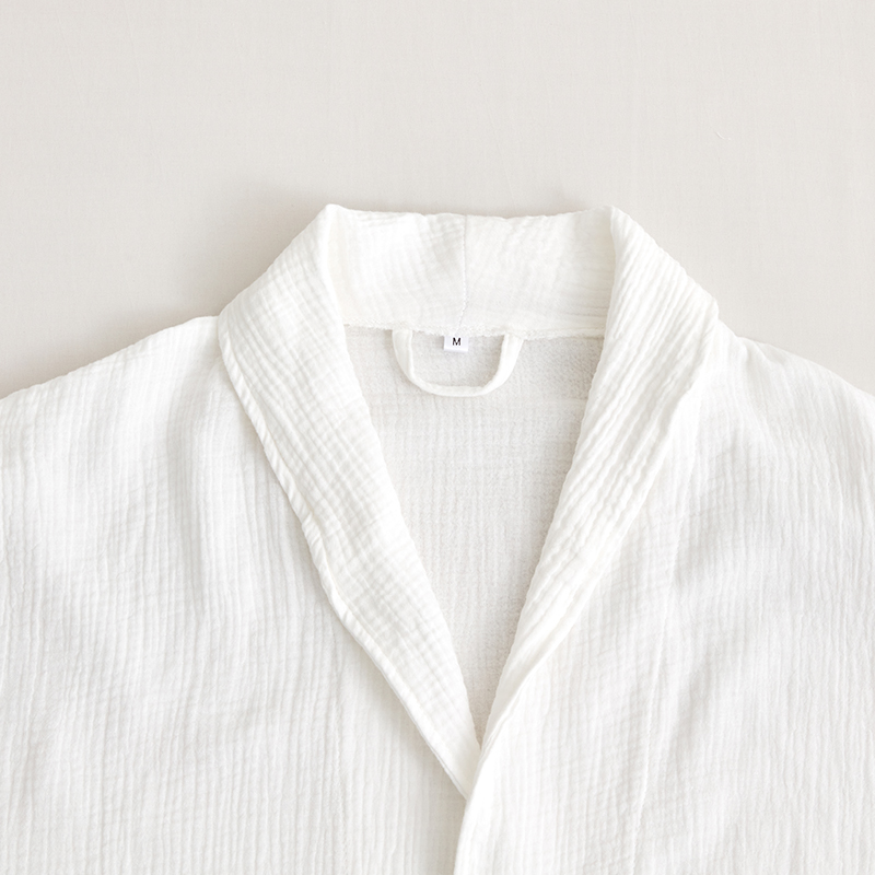 বাড়ি / পণ্য / হোটেল বাথরোব / ডাবল-লেয়ার গজ কটন ফ্যাব্রিক শাল কলার হোটেল বাথরোব